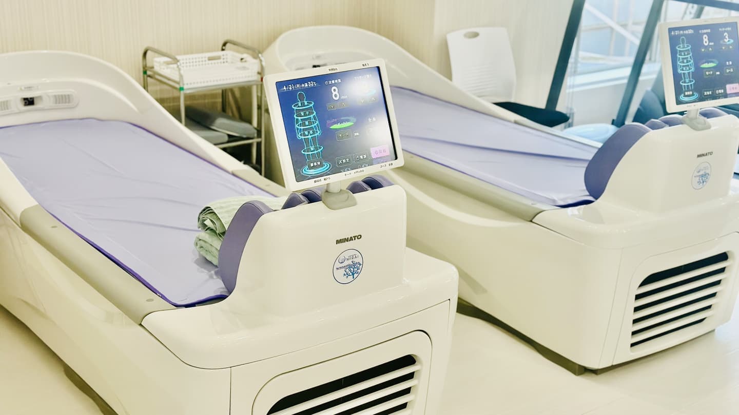 また、筋緊張を緩和するため整形外科に設置されている機器もございます。機能訓練指導員1名~2名、看護師1名~2名常駐しておりますので安心してご利用いただけるかと思います。